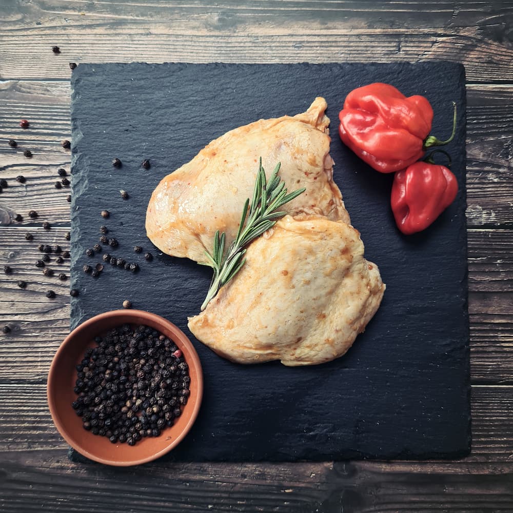 Our Chicken thighs are full of flavour and perfect for chicken casserole, soup or on the Braai/BBQ. Each pack weighs approximately 800g and contains 4 thighs per pack.
