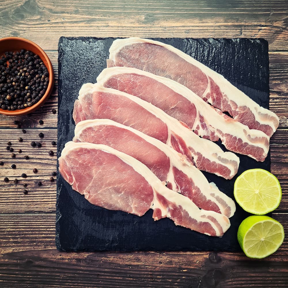Our Free Range pork loin is dry cured and then smoked over beech wood chips for a delicious added aroma and flavour. Perfect for your fry up and dont forget to add our black or white pudding.