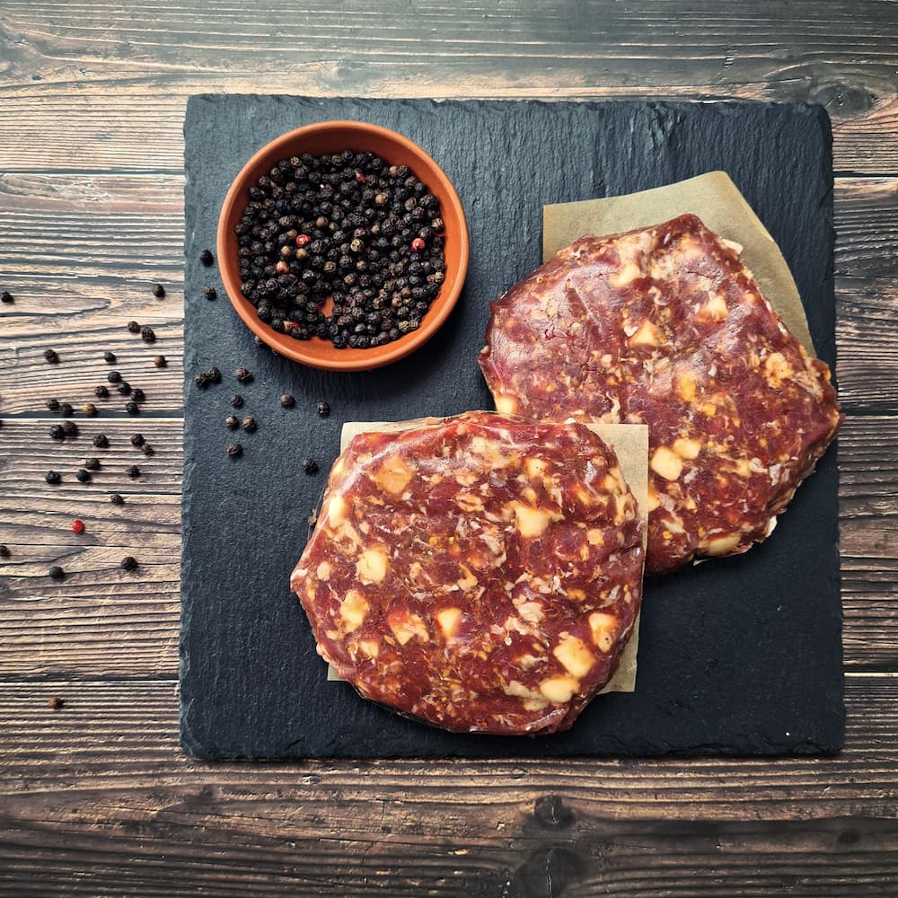 Our special, unique, spicy beef burger infused with Mature Cheddar and Naga Chilli. This 8OZ/228g burger is a definite must on the BBQ each summer. This has a good kick and not recommended if you don’t like a bit of spice and heat.The mature cheddar melts through the burger to give that extra flavour. These are sold in packs of 2.
